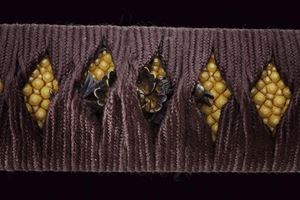 Robusta lama Shinogi-zukuri, Iori-mune. Nagasa: 73 cm. Hamon e hada ben visibili. Nakago-jiri: Kurijiri. Mei: Soshu ju Tsunahiro (Tredicesima generazione). Un Mekugi-ana. Epoca Shinshinto (1781-1876). Habaki in argento a due lamelle. In koshirae con tsuba in ferro Aoi-gata con Inome. Fuchi e Kashira in metallo color argento con fiori in rilievo recanti resti di doratura. Menuki a fiori. Saya (successiva?) in legno laccato bruno.