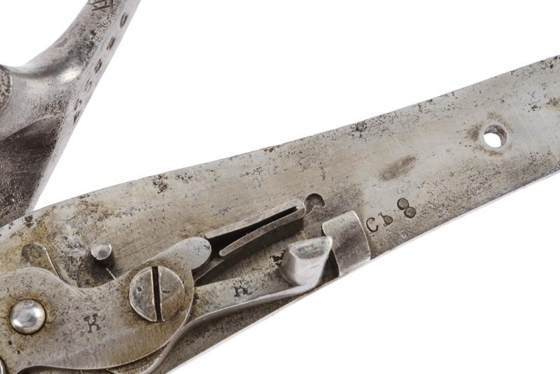 Una per fucile a luminello, marcata in cirillico e datata "1855", in patina e con incrostazioni, da pulire, la meccanica funzionante ma da rivedere. Una convertita per il fucile a retrocarica Krnka, con mancanze alla meccanica, cartella marcata in cirillico e con data "1866", il retro con punzoni.