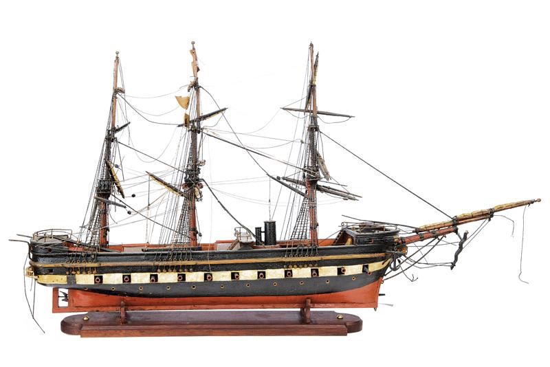 Effigiante un vascello di transizione fra le navi a vela e a vapore. Vecchio modello ben realizzato, in legno e metallo. Conserva parte dell'attrezzatura e del cordame originale. Merita un restauro adeguato. Conservato su piedistallo ligneo.