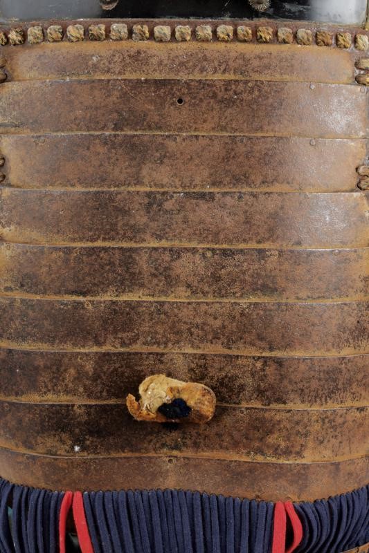 In ferro, recante sul petto un dragone rimesso in argento e oro, Kusazuri con allacciatura moderna, Haidate con lamelle a lacca nera. Supporto non incluso.