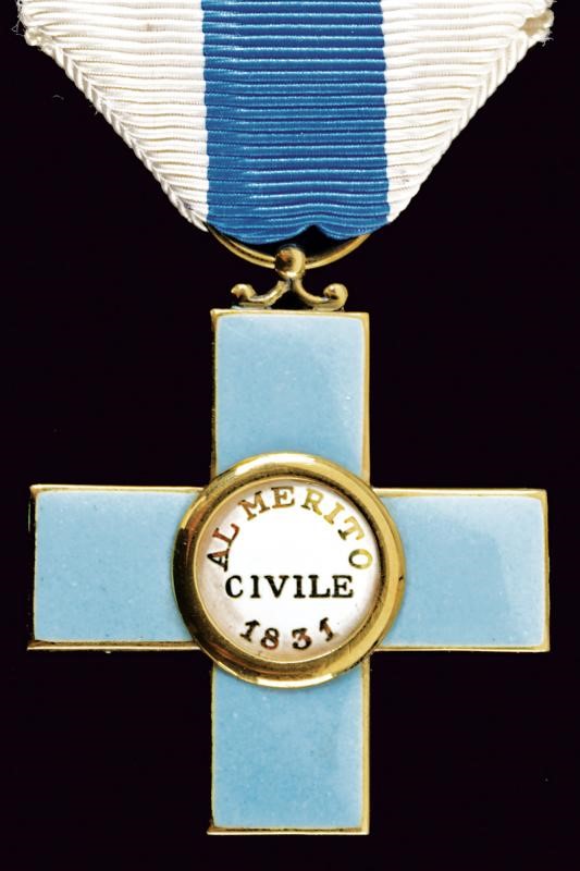 In oro e smalti, con nastro. In astuccio non pertinente.