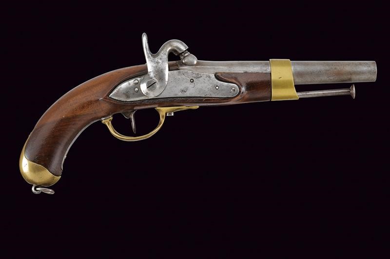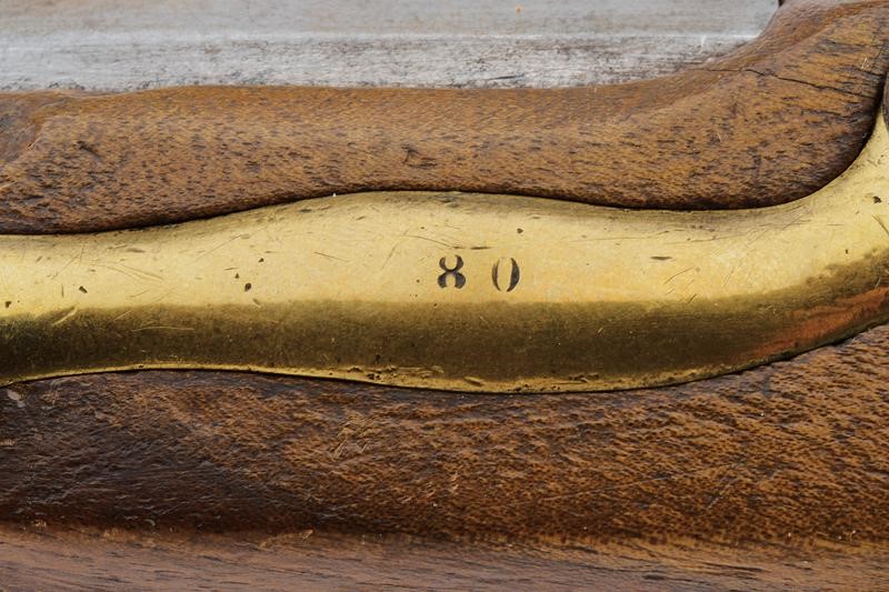 Canna tonda liscia con culatta ottagonale, cal. 18 mm. Batteria convertita a luminello con cartella piatta recante resti di marcatura "GM" per Mazzocchi; scodellino in ottone. Mezza cassa in legno (restauro al muso); fornimenti lisci in ottone, la contropiastra marcata "80". Bacchetta e anello di sospensione in ferro.