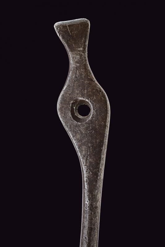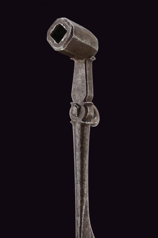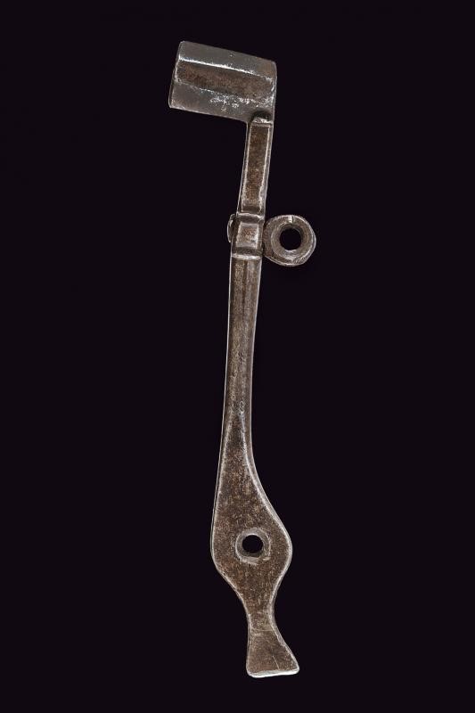 Di piccolo formato, per pistola; la testa angolata a 90° di sezione ottagonale, munita di due aperture. Corto fusto con anello di sospensione mobile; la base traforata e munita di cacciavite.