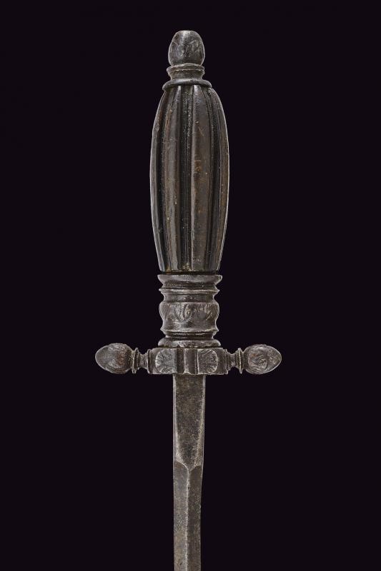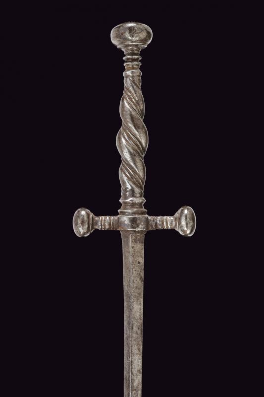 Due completamente in ferro, con impugnature decorate a spire. Uno con impugnatura in legno decorata con scanalature longitudinali, con bracci dell'elso e pomo a ghianda.