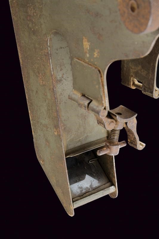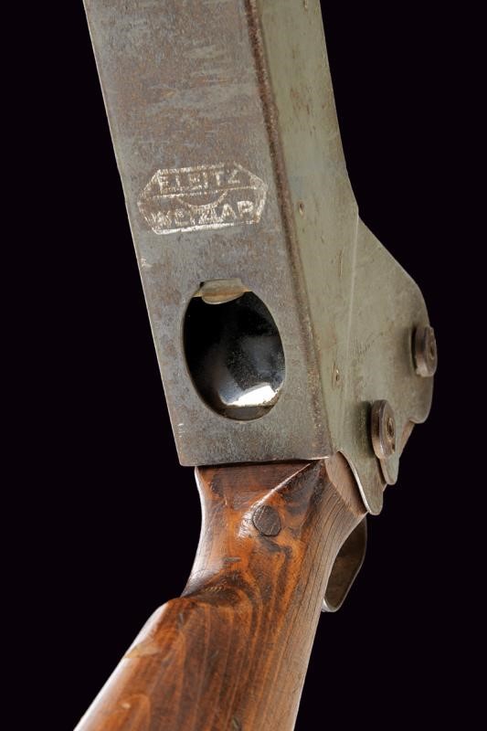 Telaio in lamina di ferro che conserva buona parte della tintura grigioverde originale (circa 75-80%). Marcatura "LEITZ / WETZLAR". Calcio in legno. Imbragatura per montare il fucile nella parte superiore della struttura. Le ottiche a specchio funzionanti permettono di vedere a distanza ad un'altezza superiore. Un filo correva dal grilletto del fucile al grilletto del simulacro per poter così azionare il grilletto del Gew 98 tramite il calcio del periscopio. Il calciolo è dotato di sportellino con scomparto per inserire specchietti di ricambio. La struttura può essere ripiegata per essere trasportata più comodamente. Qualche segno d'uso e del tempo.