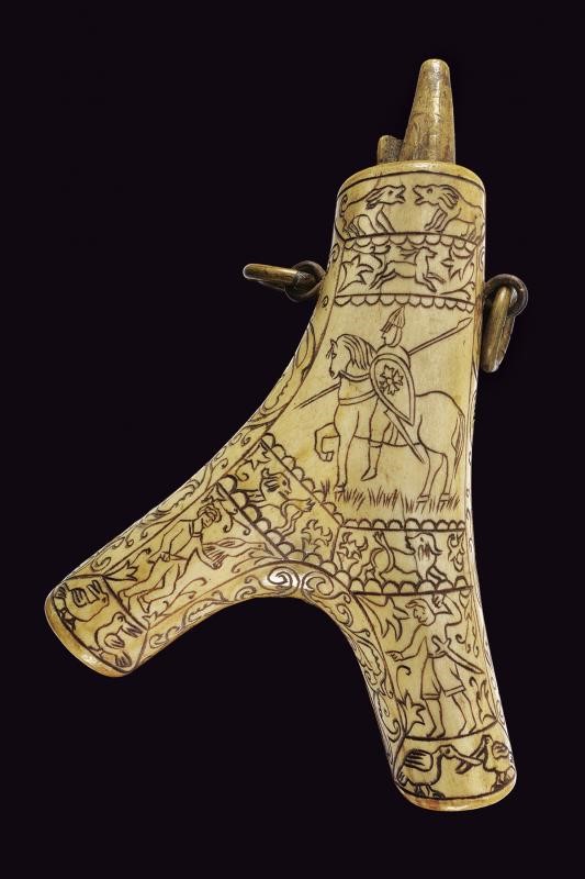 Tutte in corno di cervo, tutte riccamente elaborate, intagliate ed incise.