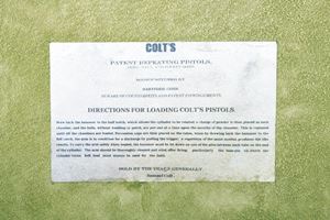 Canna tonda rigata, dotata di mirino, cal. 44 in volata. Tamburo a sei colpi con incisioni. Bande dell'impugnatura in ottone, con resti di argentatura. Varie marcature probabilmente spurie. Impugnatura in legno. Meccanica funzionante. Probabilmente una produzione belga del tardo XIX secolo. In una cassetta di legno rifoderata in pelle color verde, dotata di accessori.