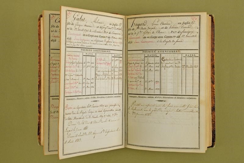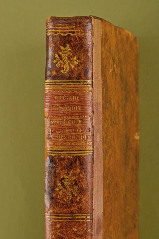 Interessante volume contenete i registri scritti a penna del reggimento de Savoie "Historique de la Brigade de Savoie". Numerose pagine contenenti nomi e storia militare degli ufficiali e sottufficiali del reggimento. Copertina rigida in pelle, il dorso con "BRIGADE DE SAVOIE / MATRICULE DES OFFICIERS ET HISTORIQUE".