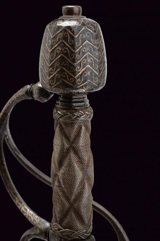 Magnifica spada da cavallo ageminata in argento, 1600 circa