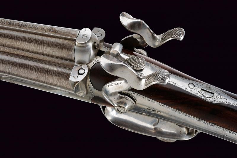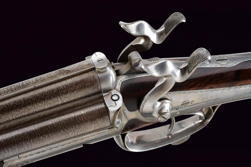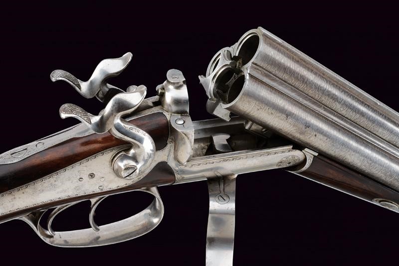 Rarissimo fucile a retrocarica a tre canne di Laine, 1880 circa