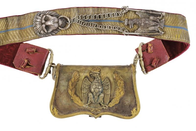 Rarissimo set di giberna con bandoliera, cintura, dragona e attacchi per sciabola, 1840 circa