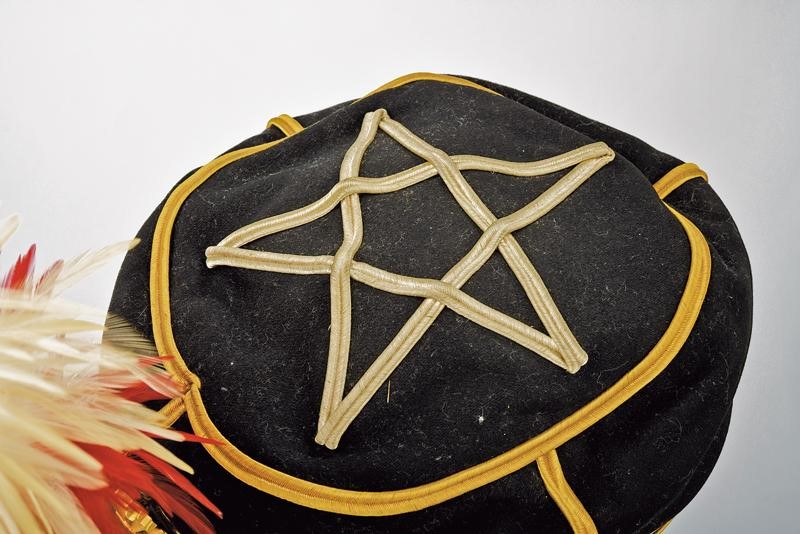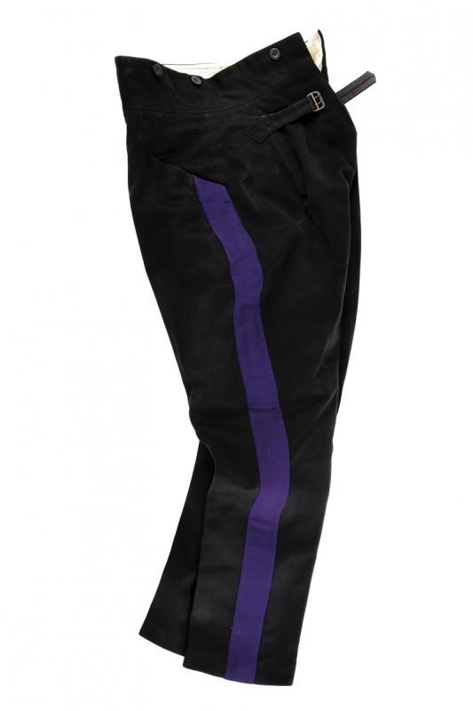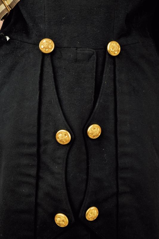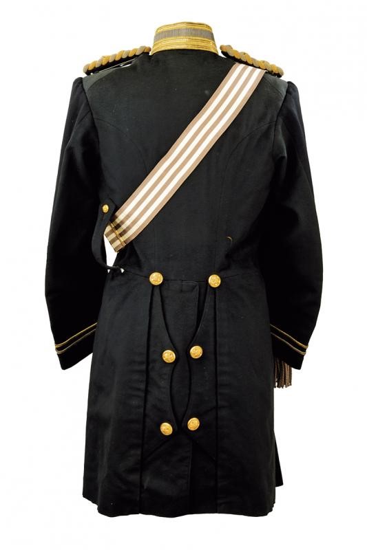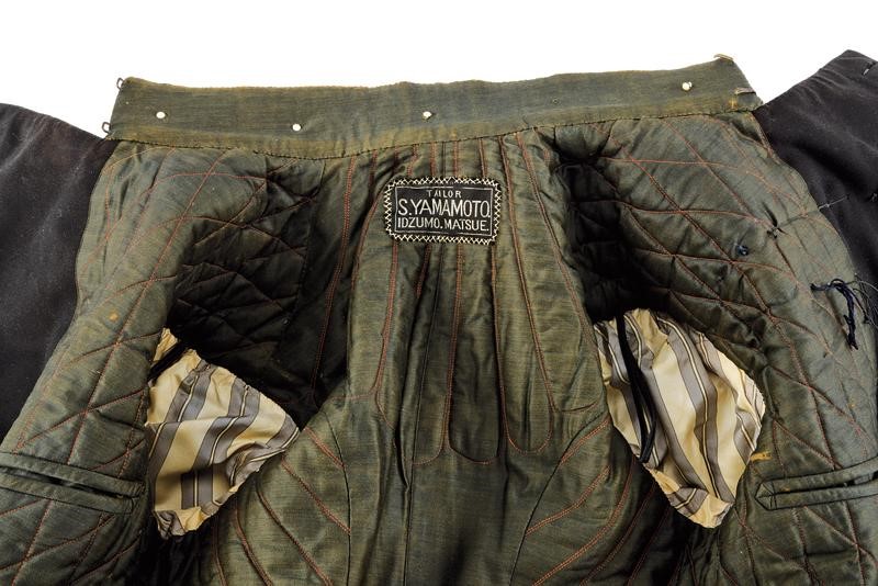Completa di berretto, giacca, pantaloni e sciarpa. Il berretto in tessuto nero, completo di profilature in canutiglia color oro e argento, fregio del sol levante e piumetto rossobianco. Giacca lunga in panno nero completa di tutti gli effetti; il colletto con canutiglia dorata e con pailette (mancanze); asole per ordini. Pantaloni neri con striscia viola che indica il servizio nella branca veterinaria dell'esercito giapponese. Include una sciarpa da ufficiale munita di due nappe.