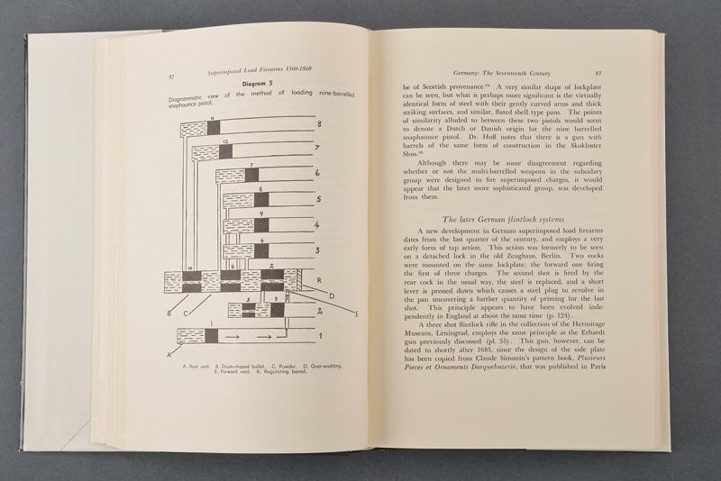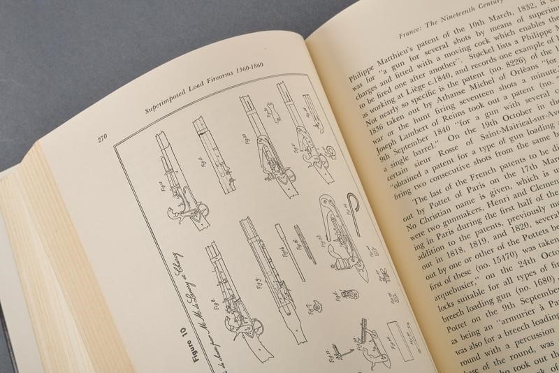 “Superimposed load firearms 1380-1860”; South China Morning Post Ltd. Hong Kong 1966. Rarissimo volume con tiratura limitata a soli 500 esemplari (questo esemplare è il n. 490), descrive, con svariate foto in b/n, le armi a ripetizione a cariche sovrapposte del periodo indicato. Copertina rigida con sovraccoperta originale. Non può mancare nella biblioteca di un serio collezionista. Praticamente l’unico volume completo sulla materia.