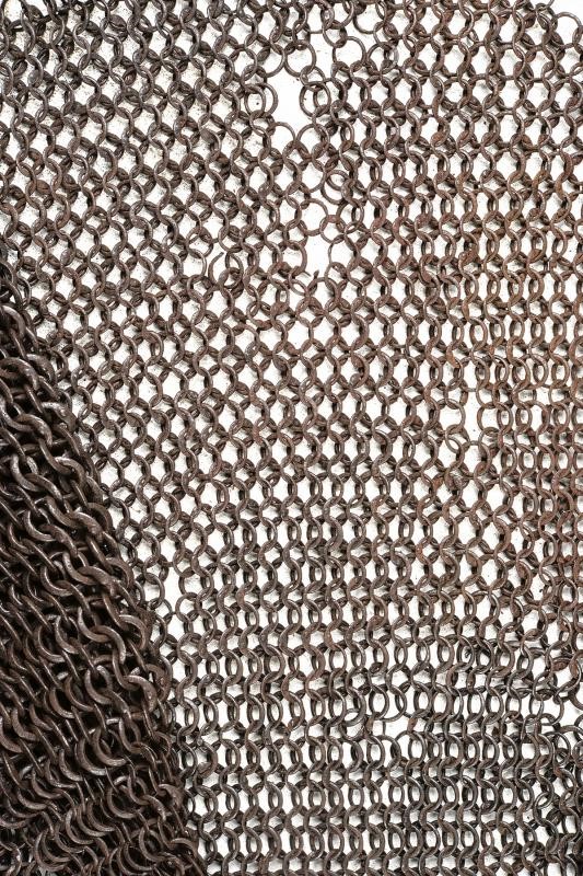 Costituita da anelli in ferro con chiusura a mezza bozza di differenti diametri: anelli di dimensione maggiore al petto, di area crescente verso il basso. La schiena con anelli più piccoli (varie mancanze). Apertura frontale, le maniche lunghe.