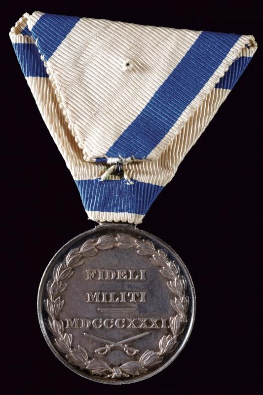 Rara medaglia militare di fedeltà per i fatti del febbraio-marzo 1831, destinata a tutti i militari in servizio attivo che fossero rimasti fedeli al duca durante il periodo rivoluzionario; in argento. Al dritto "FRANCISCUS IV. DUX MUTINAE". All rovescio entro corona d'alloro "FIDELI MILITI MDCCCXXXI", sotto la legenda due spade incrociate. Su nastro. Zecca di Vienna.