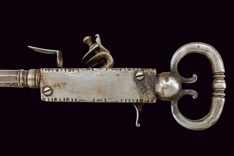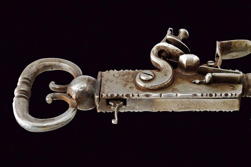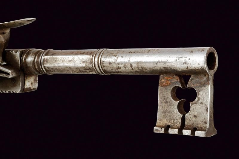 Canna a tre ordini con focone, la scocca della batteria a parallelepipedo, con meccanismo interno (non funzionante, da rivedere). Rara.