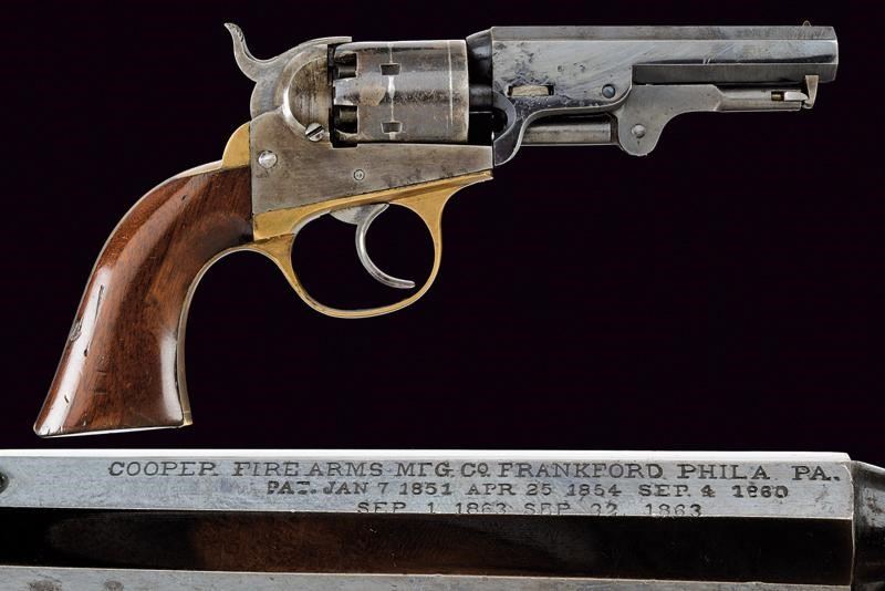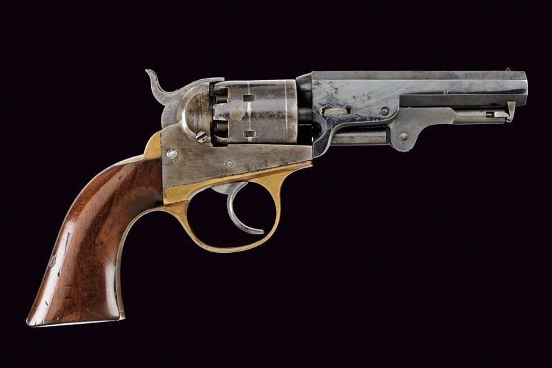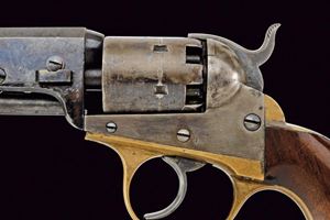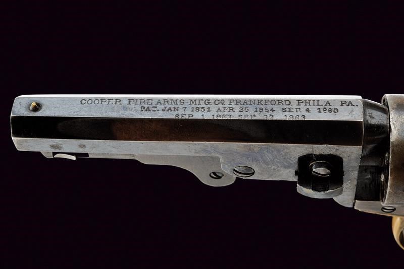 Canna ottagonale, con piccole intaccature all'interno, la rigatura visibile, dotata di mirino. Cal. 31. Marcatura dorsale in tre righe con dicitura "FRANKFORD PHILA." con marcature dei brevetti fino al 1863. Tamburo a sei colpi. Meccanica funzionante sia in doppia che singola azione. Ponticello e bande dell'impugnatura in ottone. Matricola "69xx" coeva su canna, calcatoio e tamburo. Guancette in legno.