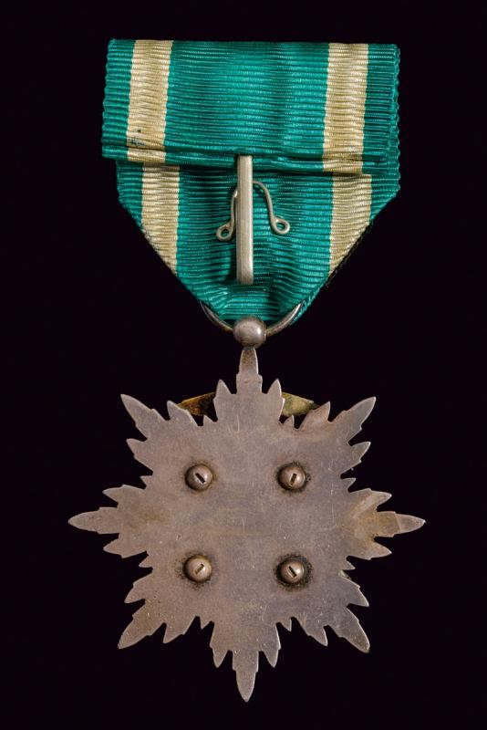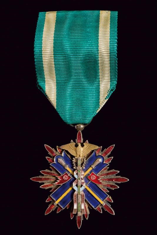 Insegna di quarta classe, in metallo smaltato. Con nastro, in astuccio originale.