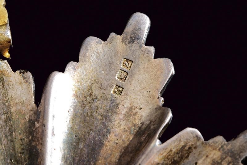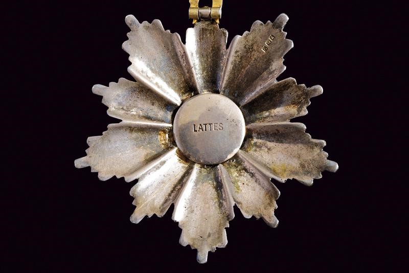Pendente da commendatore, in argento smaltato e parzialmente dorato. Con corona. Marcata sul retro "LATTES" e con punzoni. Nastro da collo.