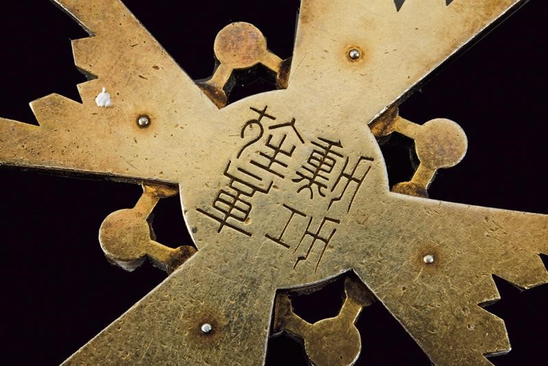 Pendente di terza classe, in metallo dorato e smaltato. Con marcatura sul retro.