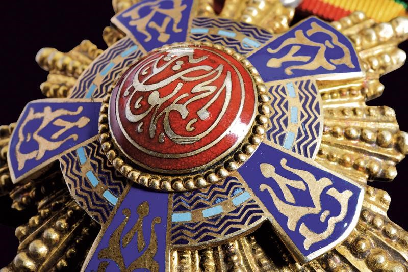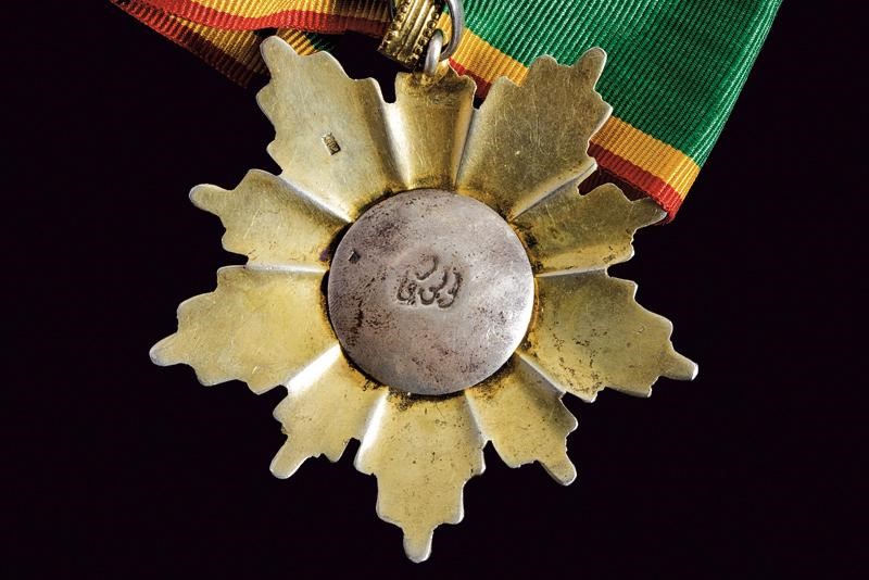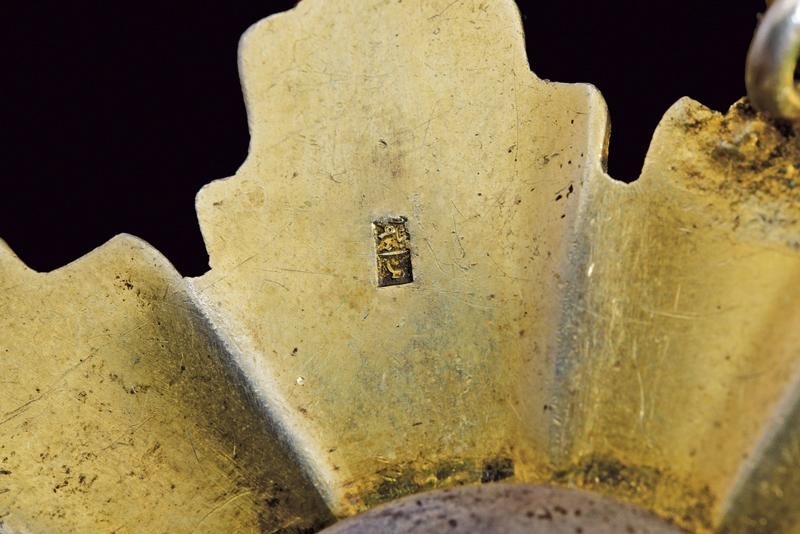 Pendente da commendatore in argento e parzialmente smaltato. Con nastro da collo. Sul retro marca del fabbricante e punzone.