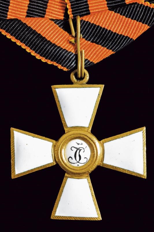Croce da cavaliere, in metallo dorato e smaltato. Chip. Con nastro.
