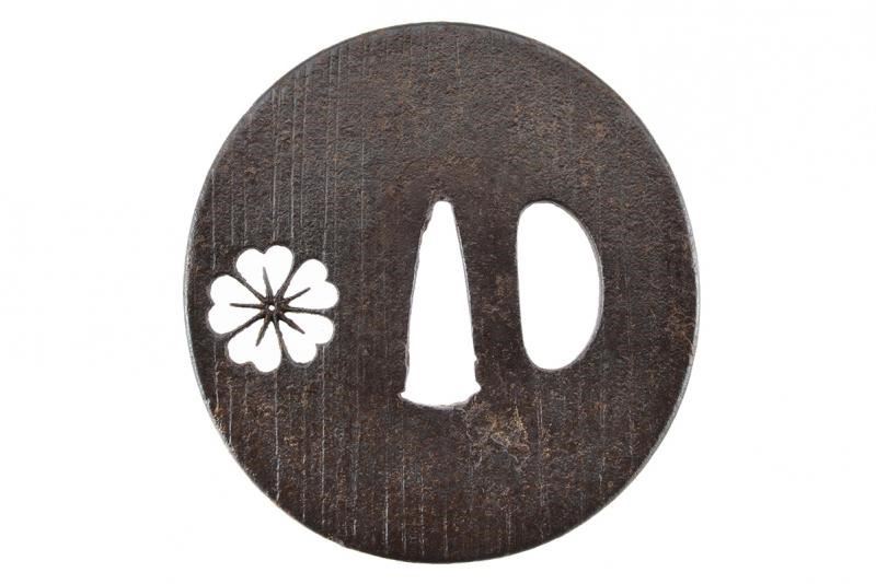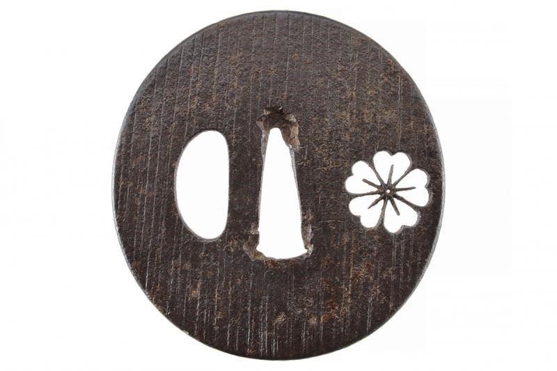 In ferro, di forma ovale con resti di mei, sukashi kiku, kozuka-hitsu ana. Primo periodo Edo.