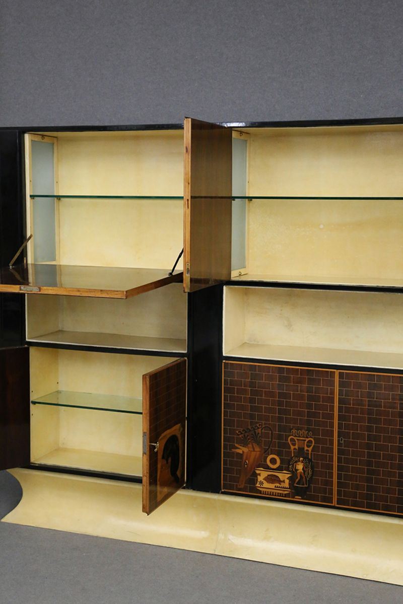 intarsiata per Anzani, in pregiate essenze e pergamena.