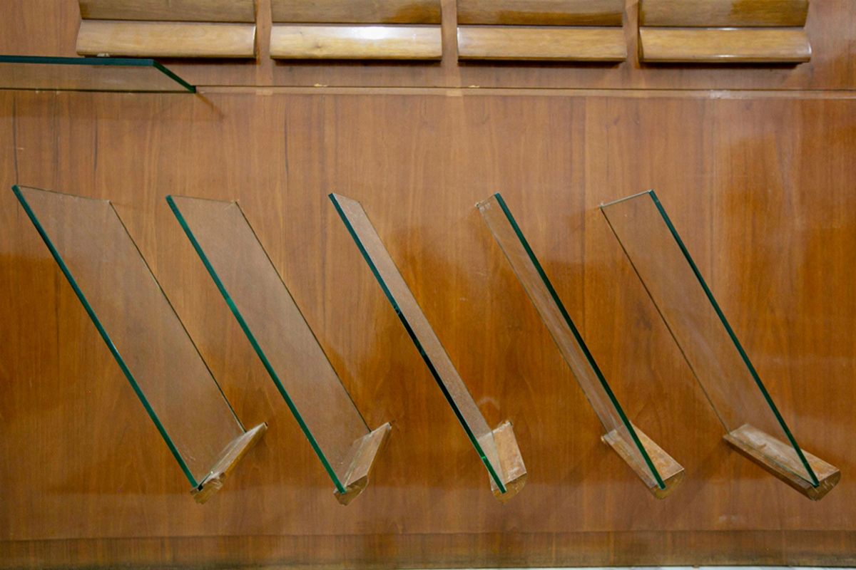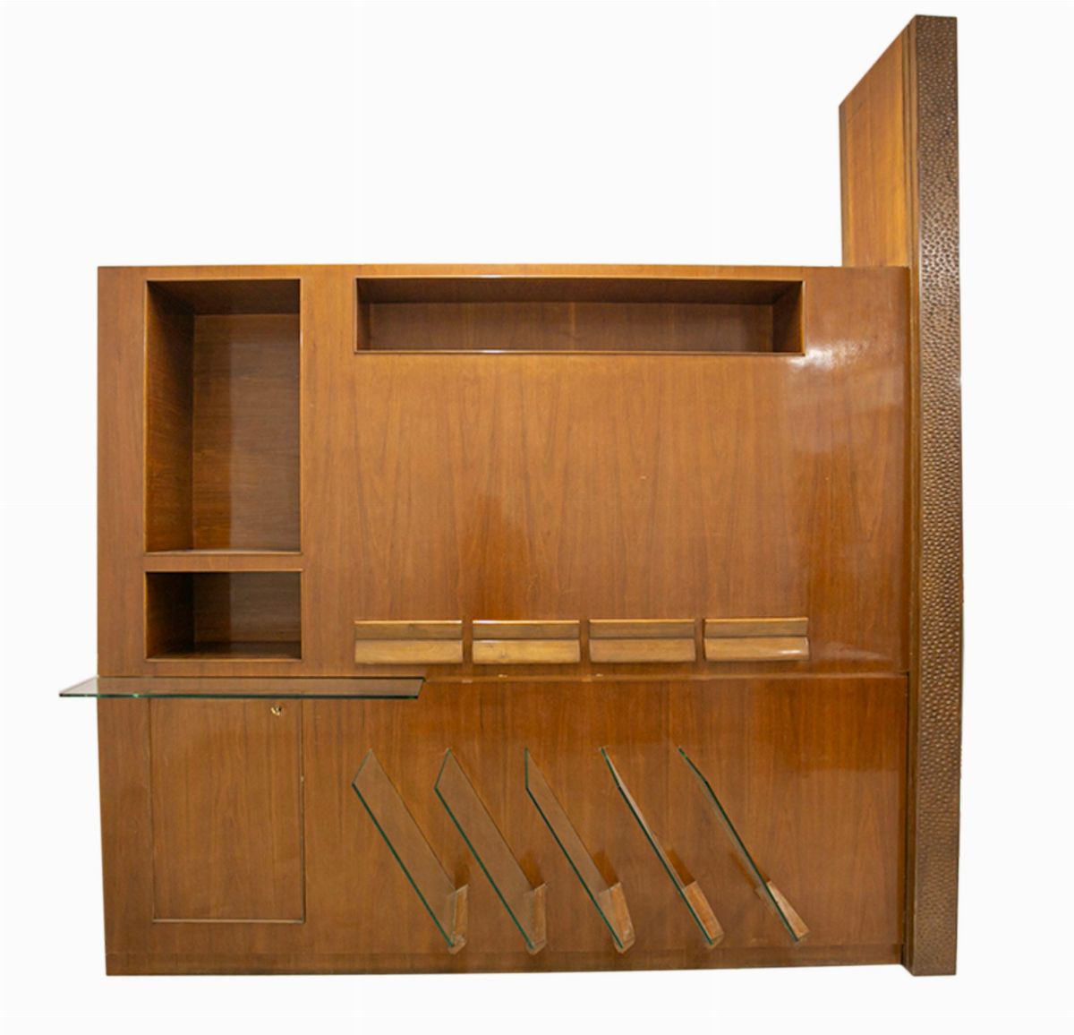 composta da parete bifacciale contenente vano bar e portariviste, pedana e bancone. Lievi Difetti.
