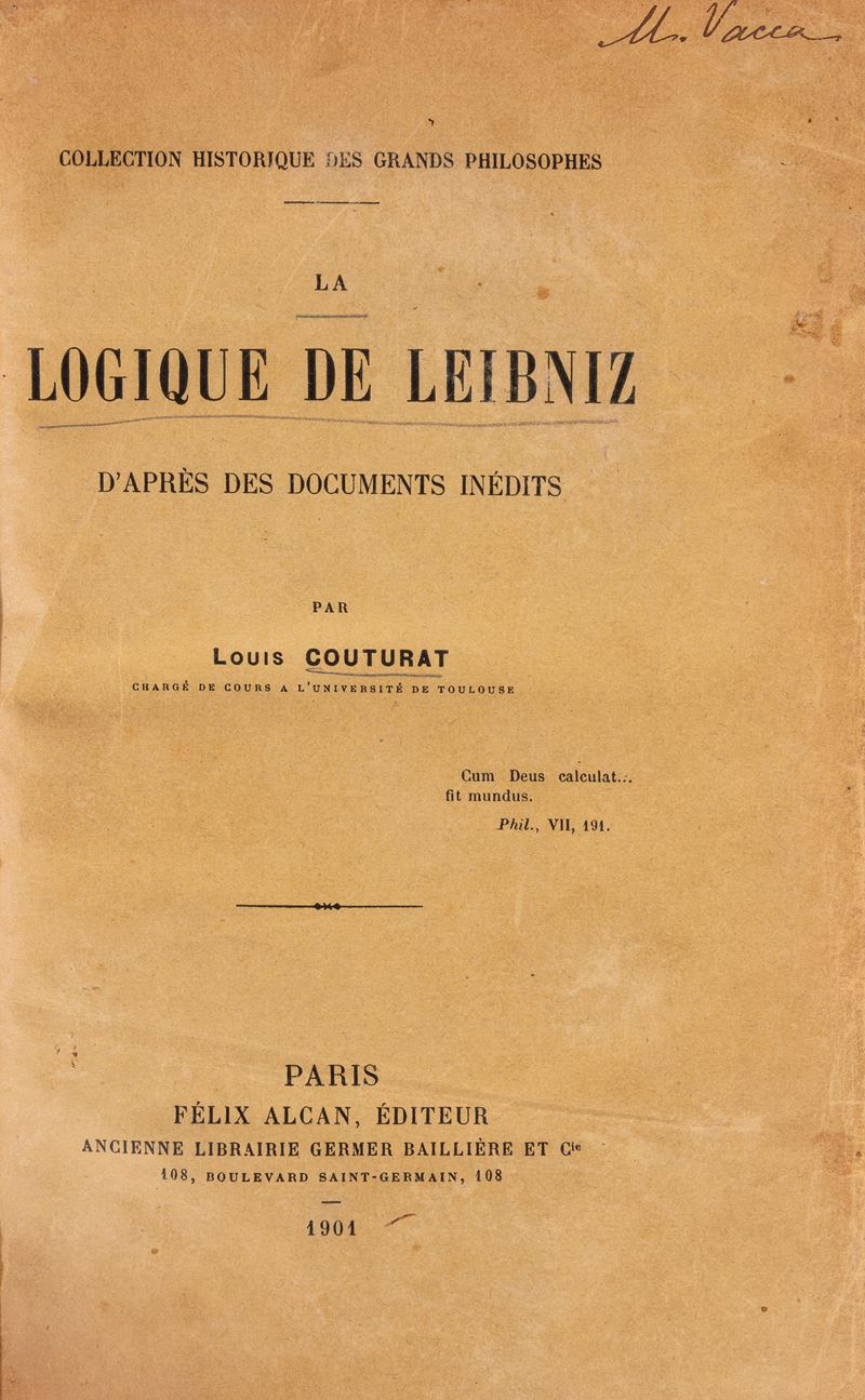 La logique de Leibniz d'après des documents inédits par Louis Couturat, 1901