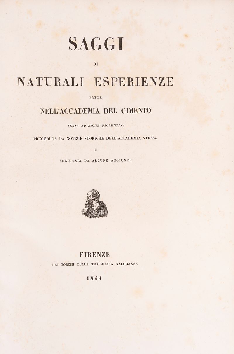 Saggi di naturali esperienze fatte nell'Accademia del Cimento. Terza edizione fiorentina, preceduta da notizie storiche dell'Accademia stessa e seguita da alcune aggiunte., 1841
