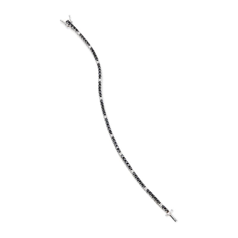 in oro bianco 18kdiamanti neri taglio rotondo per totale ct 1,70 circa alternati a diamanti incolore taglio brillante per totale ct 0,30 circa.