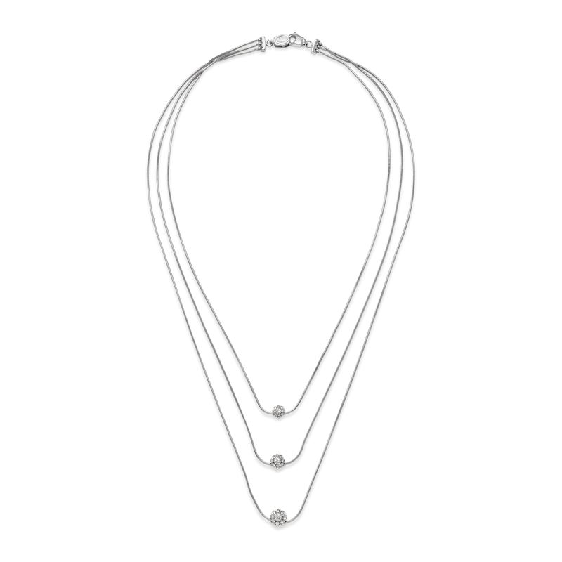 in oro bianco 18krealizzata a tre fili con pendenti scorrevoli a fiori in diamanti taglio brillante.
