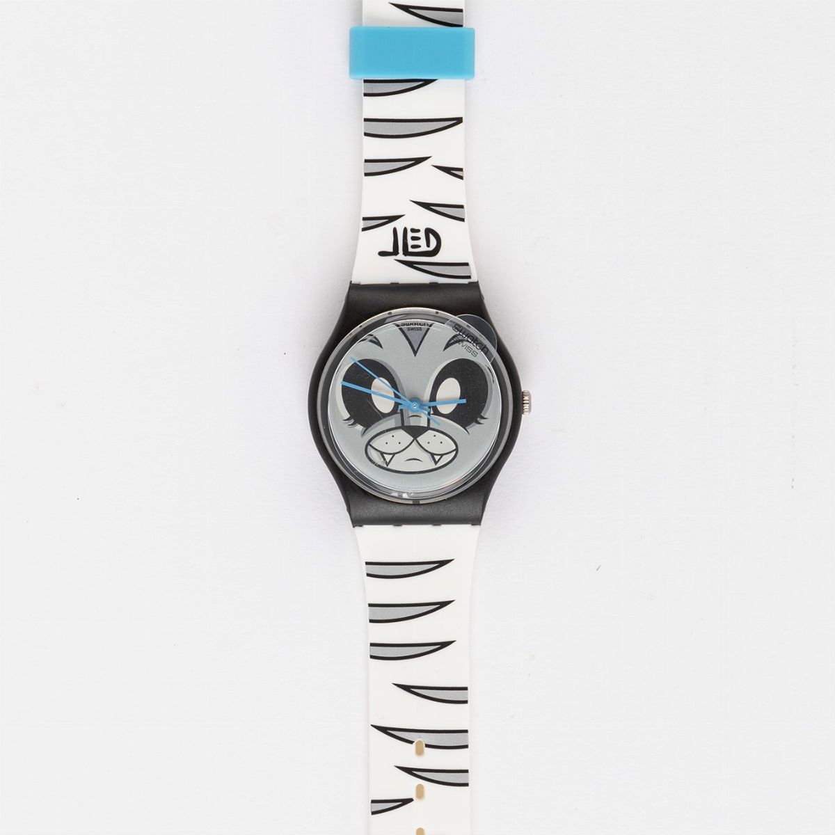 Swatch ha collaborato con Kidrobot, il marchio di giocattoli e lifestyle alla moda, per creare la nuova Kidrobot for Swatch Collection. Si tratta di otto modelli Gent. BENGALI è stato creato dall'artista americano Joe Ledbetter di Los Angeles. Per il suo design dello Swatch Gent, ha utilizzato un simpatico muso di gatto sul quadrante e il cinturino di gomma è una pelliccia a strisce bianche e grigie.