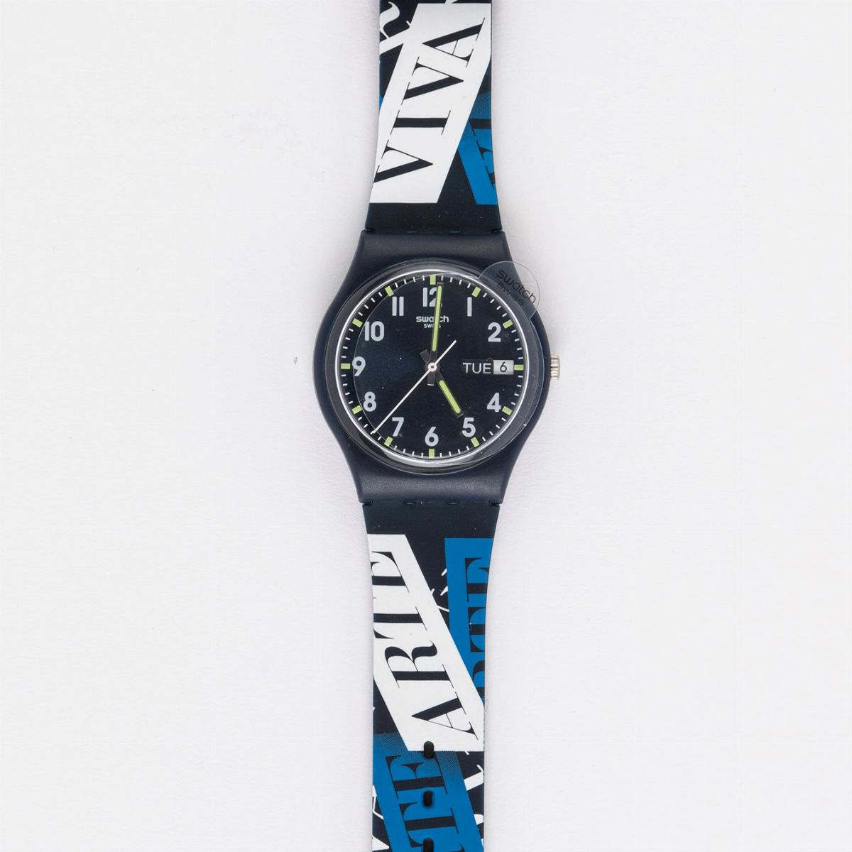 Swatch è nuovamente presente alla Biennale di Venezia 2017 con una serie di artisti e collaborazioni. Per questa occasione speciale è stato progettato lo Swatch Gent Special VIVA ARTE, che celebra il motto della mostra sul cinturino, sui passanti e sulla custodia in cartone. Ancora una volta, un piccolo pezzo d'arte per il polso. Questo speciale è molto raro perché è stato venduto solo a Venezia. L'ora è molto facile da leggere e c'è anche un datario a ore tre. L'orologio è impermeabile, ha un preciso movimento al quarzo con batteria e un'indicazione del giorno e della data a ore 3.
