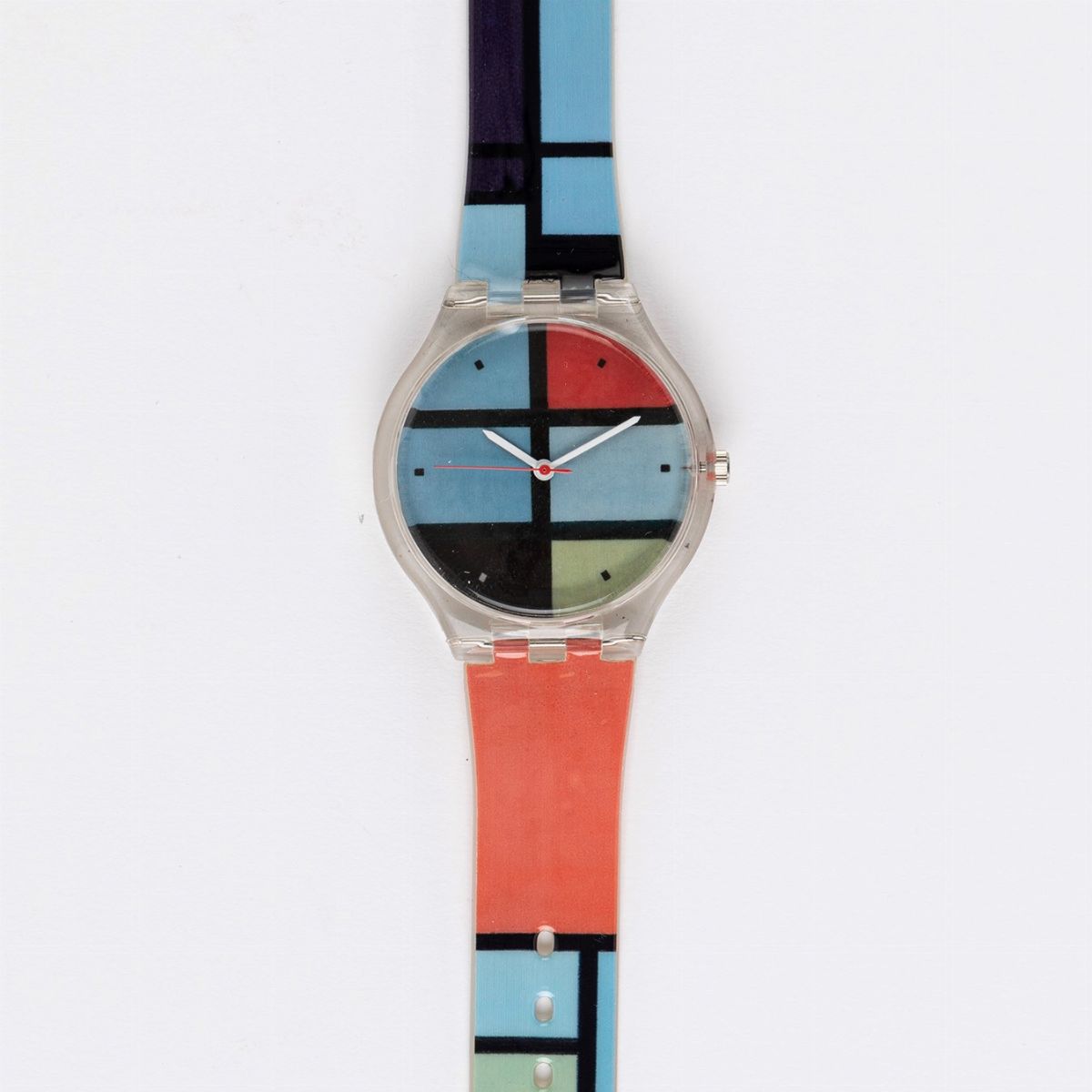 Il design dell'orologio evoca un primo esempio del modo geometrico di dipingere che Piet Mondrian (olandese,