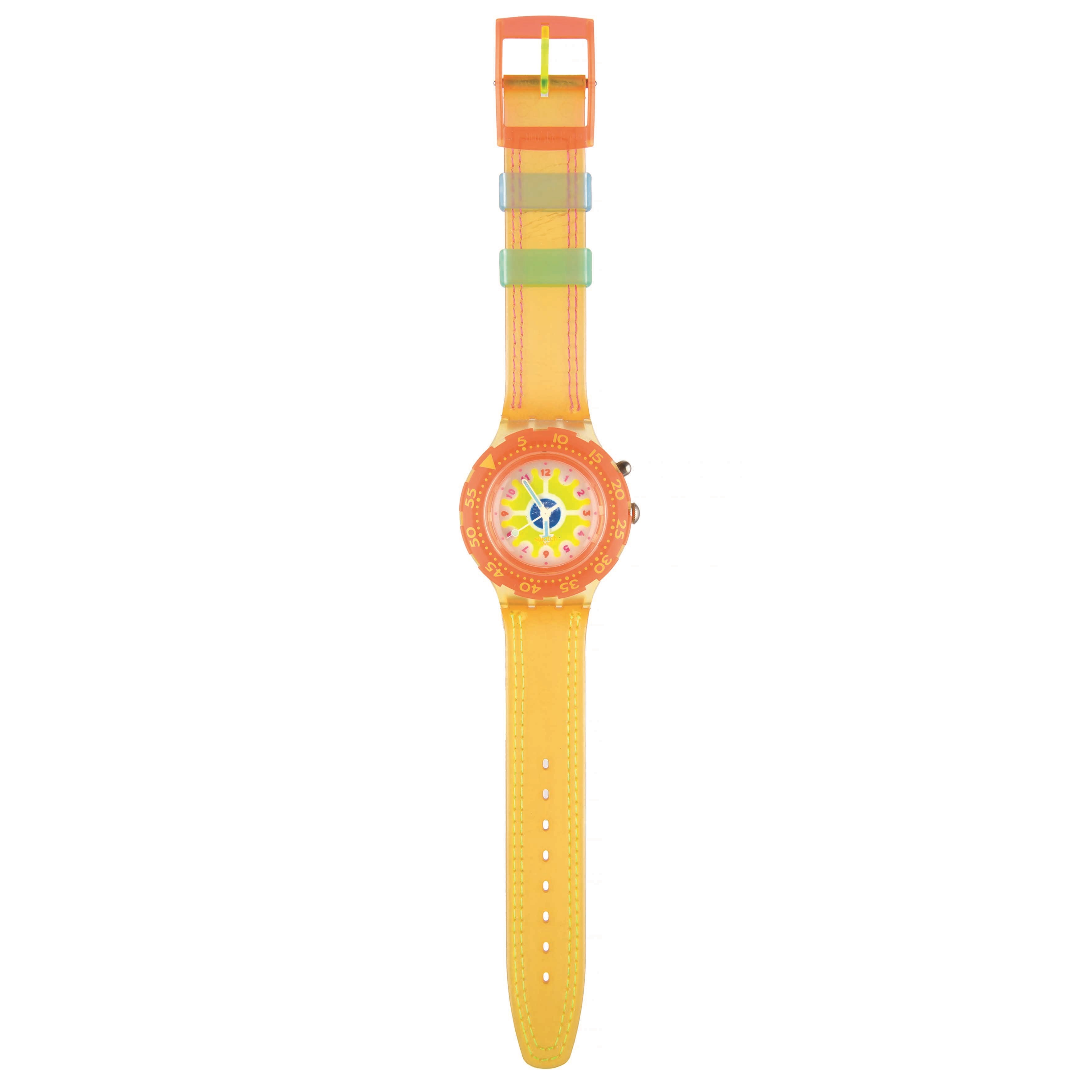 Gli orologi Swatch sono presentati come oggetti da collezione e sono venduti con la formula "visto e piaciuto". Dopo 20 anni sia i cinturini in plastica che quelli in pelle potrebbero essersi asciugati e diventare troppo fragili da indossare. Inoltre non essendo stati verificati in quanto a meccanismo e batteria non possiamo garantirne il corretto funzionamento. Suggeriamo quindi al potenziale acquirente di visionare i lotti d'interesse.