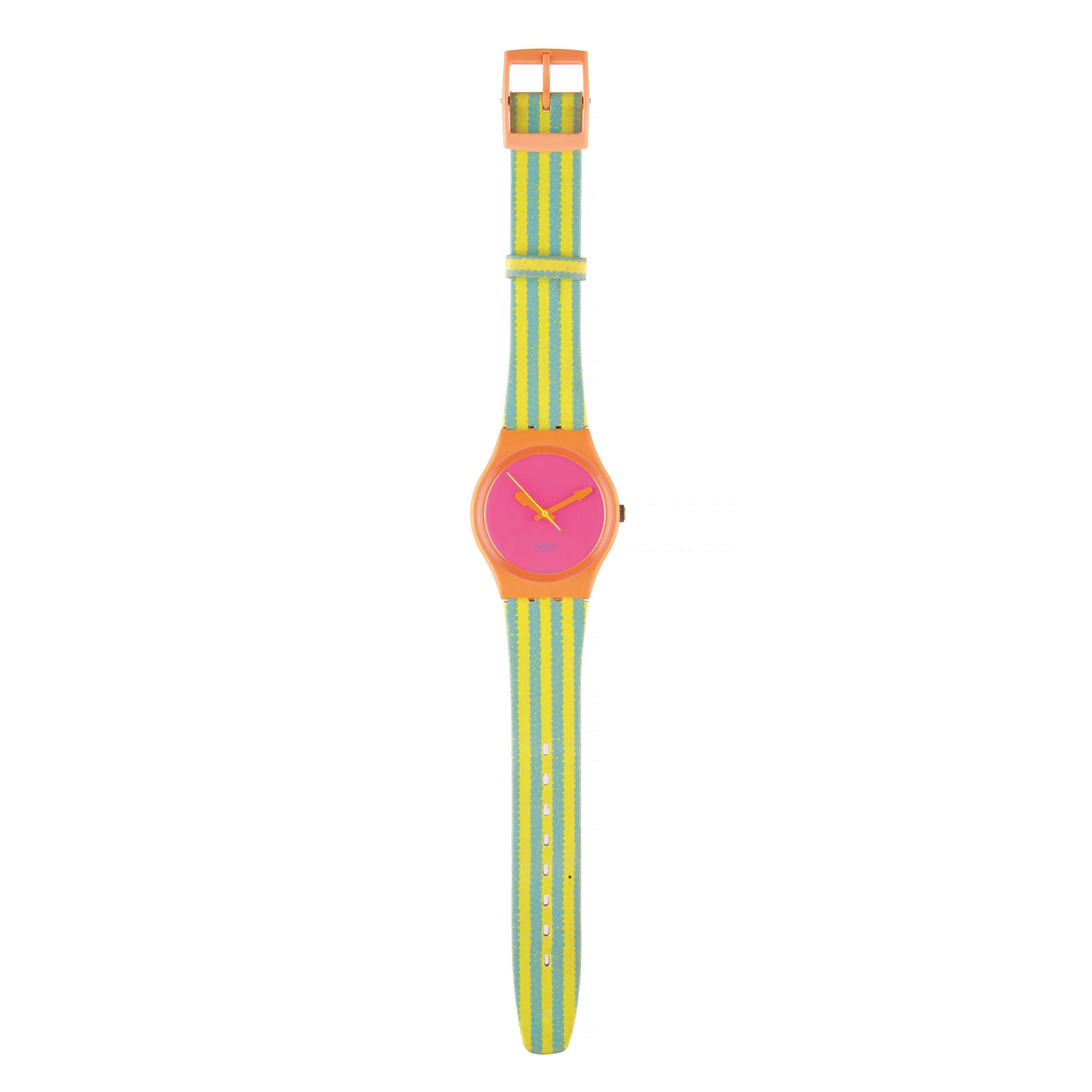 Gli orologi Swatch sono presentati come oggetti da collezione e sono venduti con la formula "visto e piaciuto". Dopo 20 anni sia i cinturini in plastica che quelli in pelle potrebbero essersi asciugati e diventare troppo fragili da indossare. Inoltre non essendo stati verificati in quanto a meccanismo e batteria non possiamo garantirne il corretto funzionamento. Suggeriamo quindi al potenziale acquirente di visionare i lotti d'interesse.