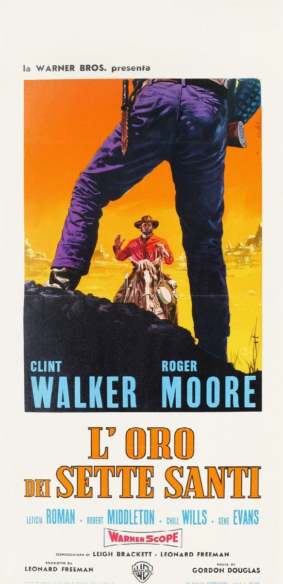 Bozzetto originale realizzato da Enzo Nistri per la locandina ufficiale del film "L'oro dei sette santi", diretto da Gordon Douglas con Clint Walker, Roger Moore e Letícia Román nel 1961. Firmato.