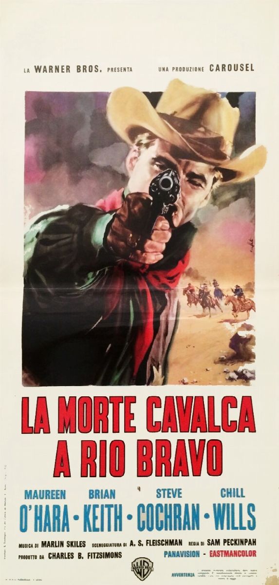 Bozzetto originale realizzato da Enzo Nistri per la locandina ufficiale del film "La morte cavalca a Rio Bravo", diretto da Sam Peckinpah (è il suo primo lungometraggio) con Maureen O'Hara, Brian Keith e Steve Cochran nel 1961. Firmato.