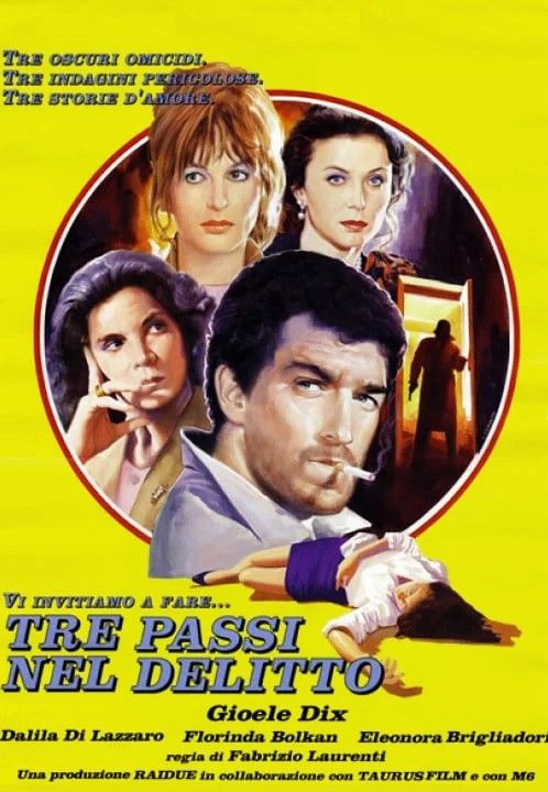 Bozzetto originale realizzato da Crovato per la locandina ufficiale del film tv "Tre passi nel delitto", diretto da Fabrizio Laurenti con Gioele Dix, Dalila Di Lazzaro, Florinda Bolkan e Eleonora Brigliadori nel 1993. Firmato.