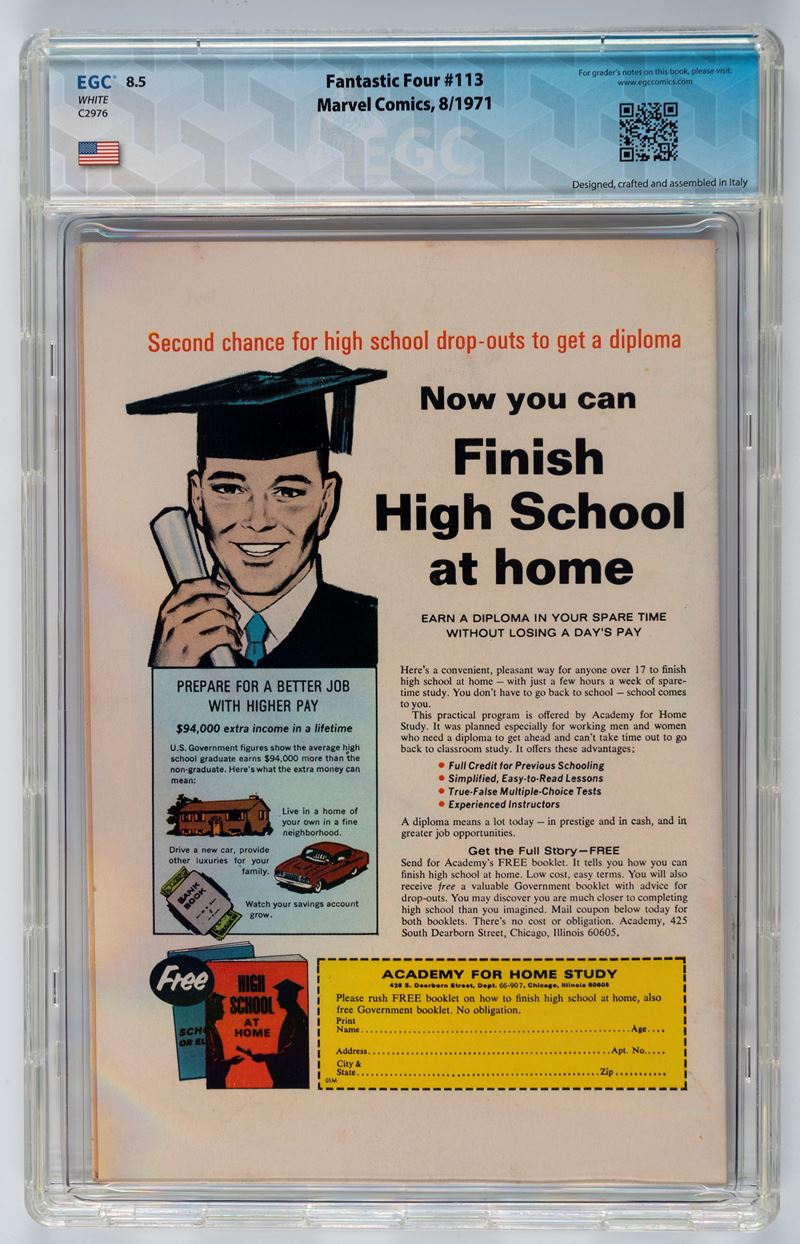 Tutti i fumetti sono gradati da EGC - European Grading Company, un servizio di valutazione dei fumetti che si distingue per la sua precisione e trasparenza. EGC utilizza una scala decimale completa da 0 a 10 per valutare lo stato dei fumetti, permettendo una valutazione estremamente dettagliata. Ogni fumetto viene esaminato da tre esperti valutatori che concordano insieme la valutazione finale. Il sistema di grading di EGC è applicabile a fumetti di qualsiasi epoca, senza differenziazioni tra capolavori del passato e nuove gemme. La valutazione finale viene pubblicata sia sul sito web di EGC che consegnata in formato prestigioso al proprietario del fumetto ed è liberamente visionabile grazie ad un QR Code che trovate sul retro e grazie al quale potete prendere visione del lavoro svolto dai valutatori.