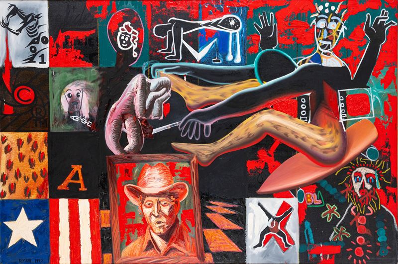 Firmato e datato al verso: Kostabi, Potlatches, 1990
