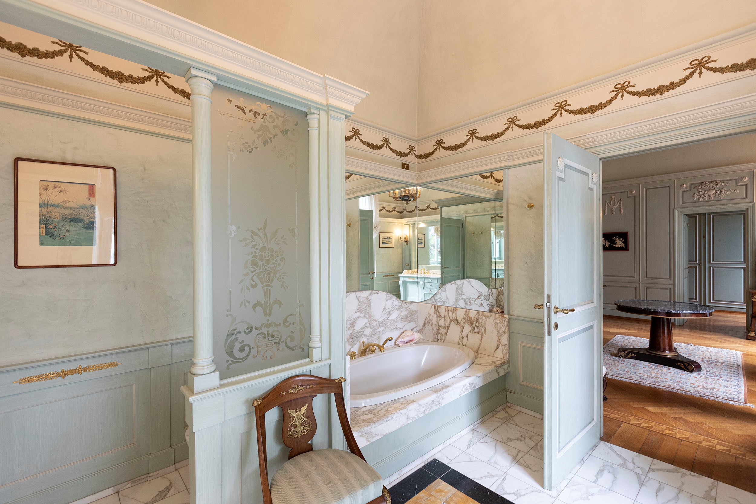 Comprende una biblioteca a tutte le pareti, con armadi interamente dipinti da una delle più famose artiste francesi del trompe l'oeil, che espone ora a Montecarlo. Sono adiacenti alla stanza da letto un vestiaire in boiserie Art Nouveau, una cucinetta, e un bagno ristilizzato come la stanza da letto, con marmi preziosi, appliques del ‘700.