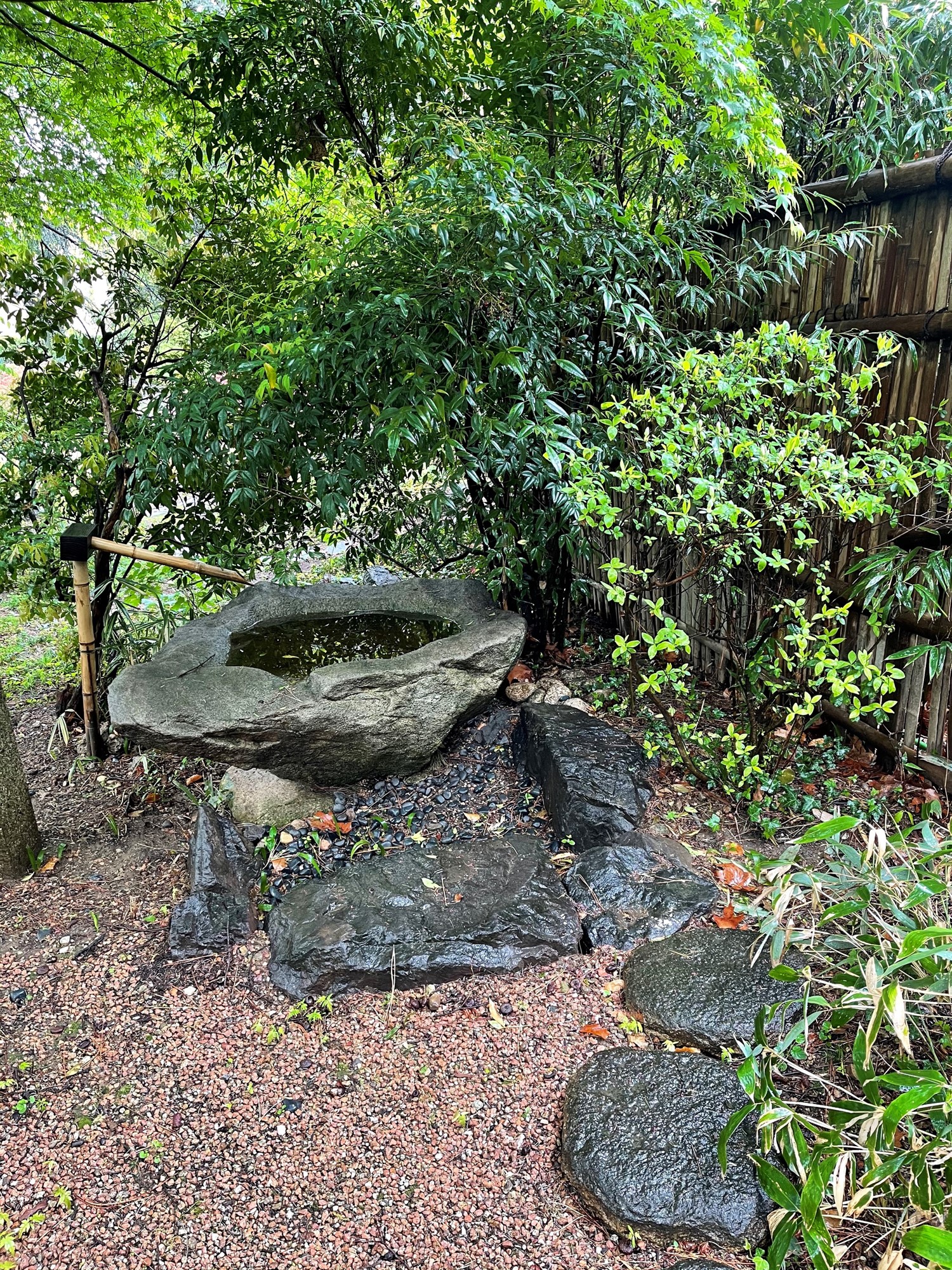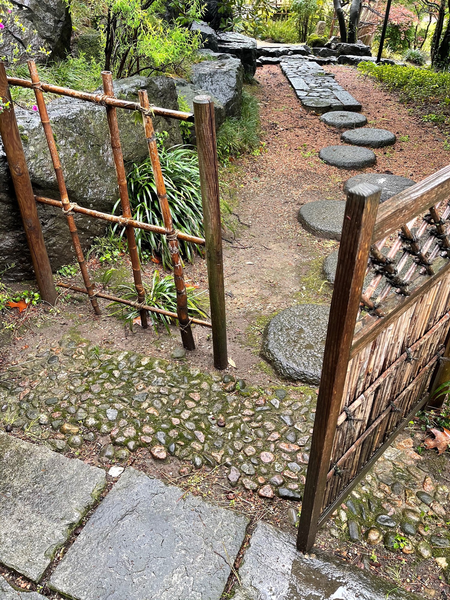 Le essenze del giardino sono in gran parte autoctone del Giappone: bambù, aceri, pini, ciliegi, formati e adattati - come i bonsai – dall’arte e dall’esperienza artigianale giapponese, a rappresentare la bellezza e il mistero della natura intatta. In primavera il ruscello scorre tra un fiammeggiante sfavillio di azalee rosse, d’inverno la neve crea spazi e profili magici, quando piove le fronde rugiadose e i profumi creano il massimo del fascino di quest’opera d’arte. Il ruscello sfocia in un grande laghetto tutto circondato da rocce, in cui placidamente giaciono iris, ninfee e gli incombenti pini e ciliegi. Questo giardino ha attirato l’attenzione e l’ammirazione di innumerevoli visitatori da tutto il mondo, e anche dei media giapponesi, che vi hanno girato molti servizi e un film.