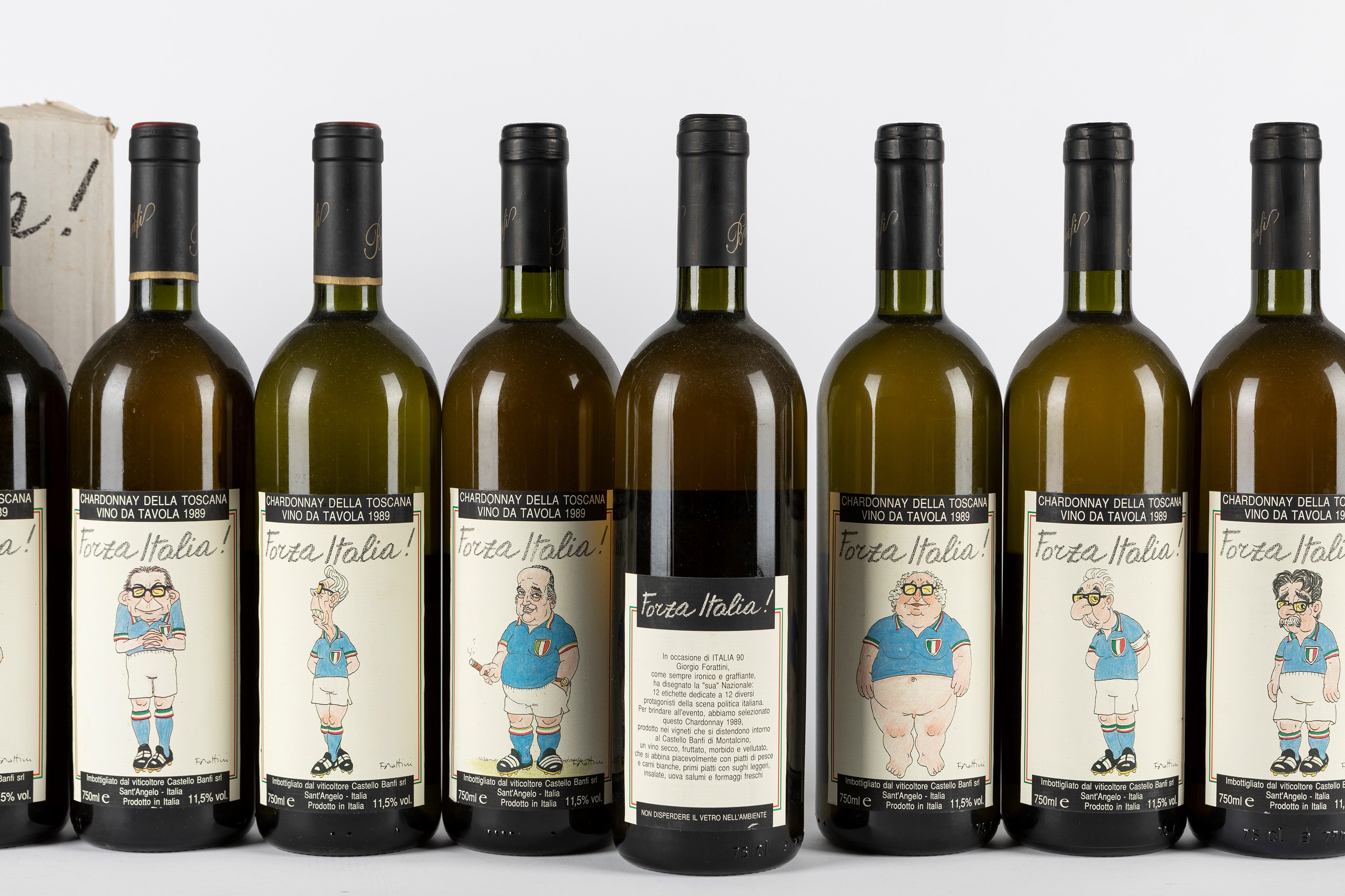 In occasione di ITALIA 90 Giorgio Forattini, come sempre ironico e graffiante, ha disegnato la "sua" Nazionale: 12 etichette dedicate a 12 diversi protagonisti della scena politica italiana. Per brindare all'evento, abbiamo selezionato questo Chardonnay 1989, prodotto nei vigneti che si distendono intorno al Castello Banfi di Montalcino [...]
