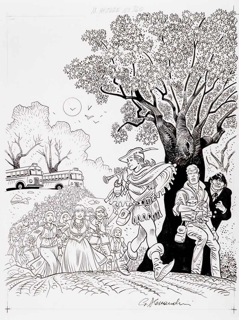 Originale di copertina realizzato da Alessandrini per "I ragazzi venuti da Hamelin", edito su Martin Mystère n. 360 dalla Bonelli nel 2018. Firmato.