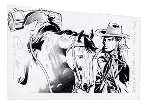 Lotto composto da una tavola originale e una vignetta realizzate da Masala per uno speciale di Tex Willer. Entrambi firmati.