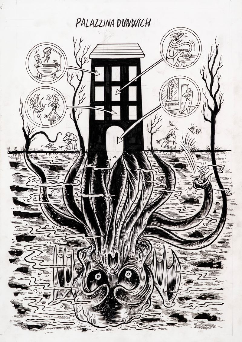 Illustrazione originale realizzata da Hurricane per il volume "Belzemorio: Manuale di stregoneria postmoderna", edito da 24 Ore Cultura nel 2024. Firmata al retro.