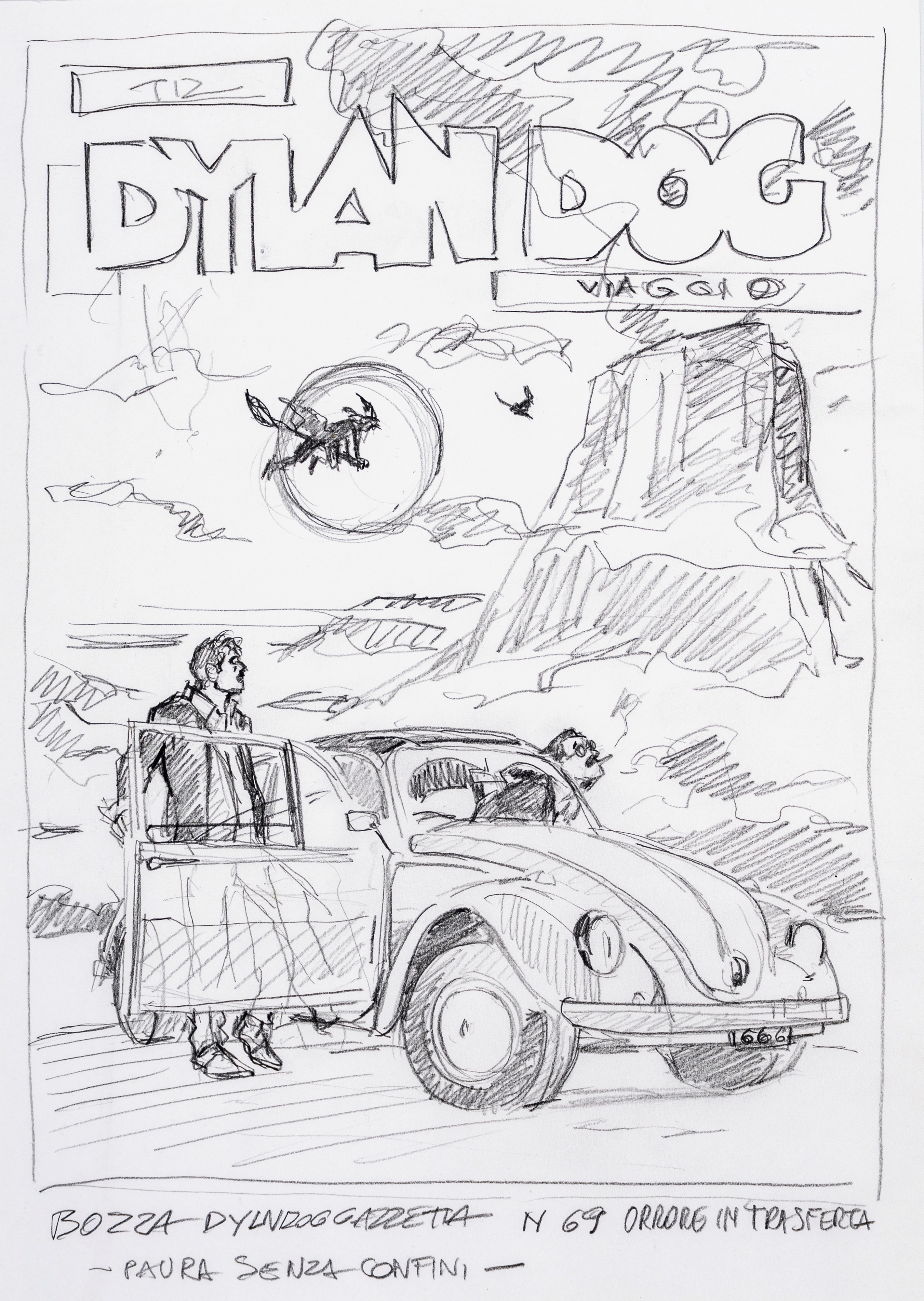 Originale di copertina realizzato dalla Airaghi per "Paura senza confini", edito su Dylan Dog: Viaggio nell'incubo n. 69 dalla Bonelli nel 2020. Si allega il preliminare a matita su carta (21 x 29,5 cm).